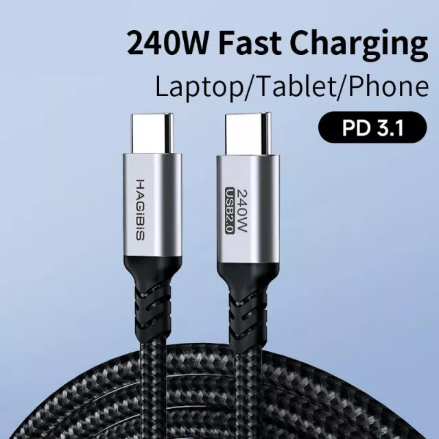 240W USB-C to USB-C Fast Charging Cable PD 3.1 for Laptops, Phones & Tablets