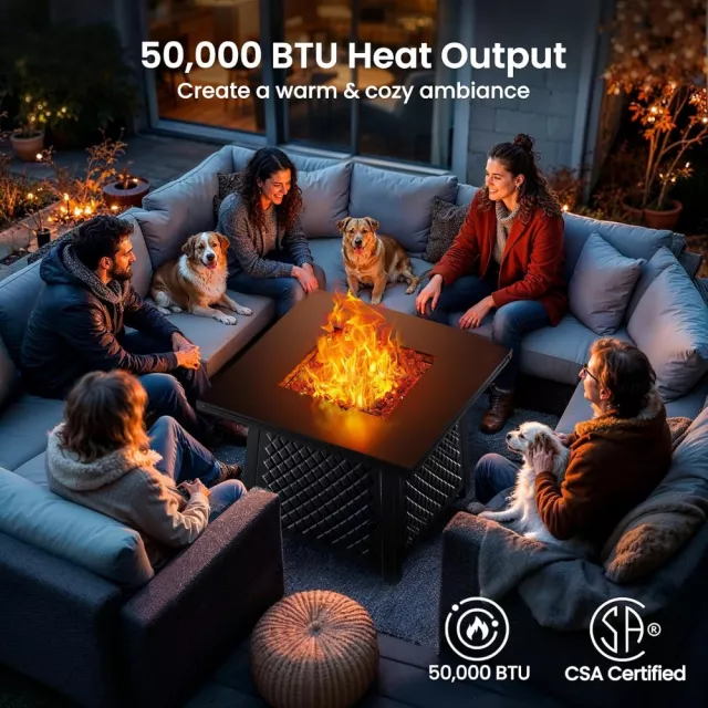 Transform your patio into a cozy gathering spot with our 28 Inch Propane Fire Pit Table. This stunning fire pit table not only provides warmth and ambiance for every occasion but also serves as a stylish centerpiece for parties, BBQs, or intimate evenings under the stars. With 50,000 BTUs of heating power, it ensures that you, your family, and friends can enjoy the outdoor comfort, regardless of the weather.