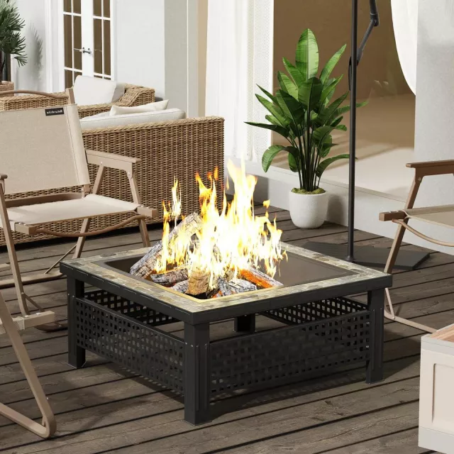 Crafted for performance and aesthetic appeal, this outdoor fire pit combines functionality with timeless design. The 5-inch deep fire bowl holds more wood for longer burns, while its powder-coated steel frame ensures durability and rust resistance. The surface features a natural slate-style finish, adding a touch of rustic charm to any yard or garden. The square base provides stability, and the included mesh spark guard keeps embers safely contained. Use the handy fire poker to adjust logs or lift the lid with ease.