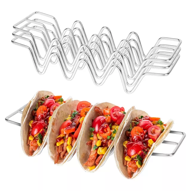Crafted from premium food-grade stainless steel, each taco holder is durable, sturdy, and designed to handle both everyday meals and special occasions. The heavy-duty construction ensures your tacos stay upright and intact—no more collapsing shells or messy fillings. Perfect for grilling, baking, or serving, these racks are both oven-safe and dishwasher-safe for ultimate convenience.