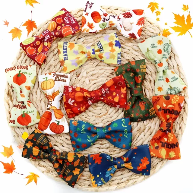 Get your furry friend ready for the festive season with our 50PCS Movable Dog Bowties for Thanksgiving! These charming, autumnal bow ties are the perfect way to make your pet look their best while celebrating the cozy and colorful season of fall. Whether it’s a Thanksgiving dinner or a cute photoshoot, these bowties will add that special touch to your pet’s look.