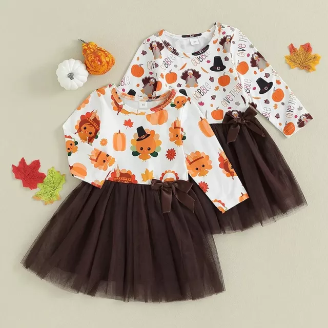 Make your little girl the star of the Thanksgiving celebration with this adorable pumpkin and turkey print tulle dress. Designed with love and attention to detail, this long sleeve A-line dress combines comfort, charm, and festive flair — perfect for holiday gatherings, family dinners, and seasonal photo shoots. The delightful mix of playful prints, soft tulle layers, and a cute bowknot makes it a must-have outfit for your toddler’s autumn wardrobe.