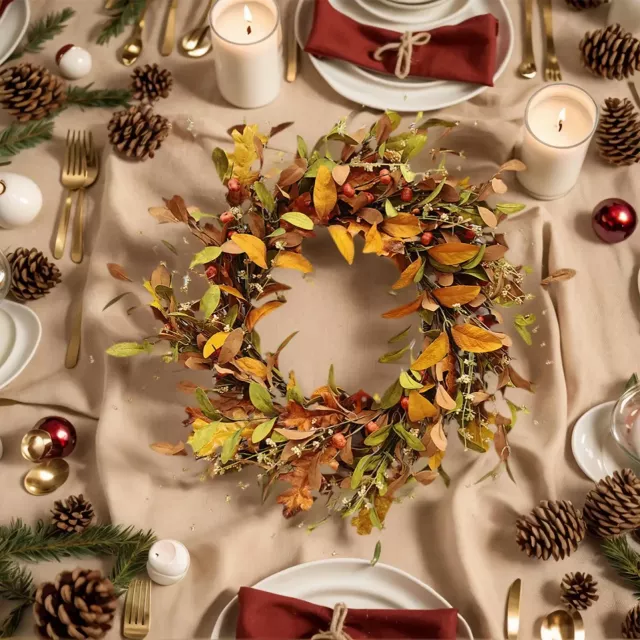 Each wreath is handmade with care, featuring realistic faux foliage and delicate seasonal details. The combination of vibrant oak leaves, textured berries, and tiny pumpkins creates a natural, abundant look that never fades. Crafted from durable artificial materials, it stays fresh and beautiful all season long — no watering, wilting, or shedding. Simply hang, admire, and enjoy its year-after-year appeal.