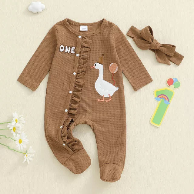 Dress your little one in the cozy comfort and adorable charm of this Autumn Newborn Baby Romper. Perfect for the cooler months, this jumpsuit will keep your baby snug and stylish, whether you’re at home or out for a stroll. The soft fabric, cute duck embroidery, and sweet headband make this set an essential in your baby’s wardrobe this fall. Made for both boys and girls, this romper combines function and style in one lovable package.