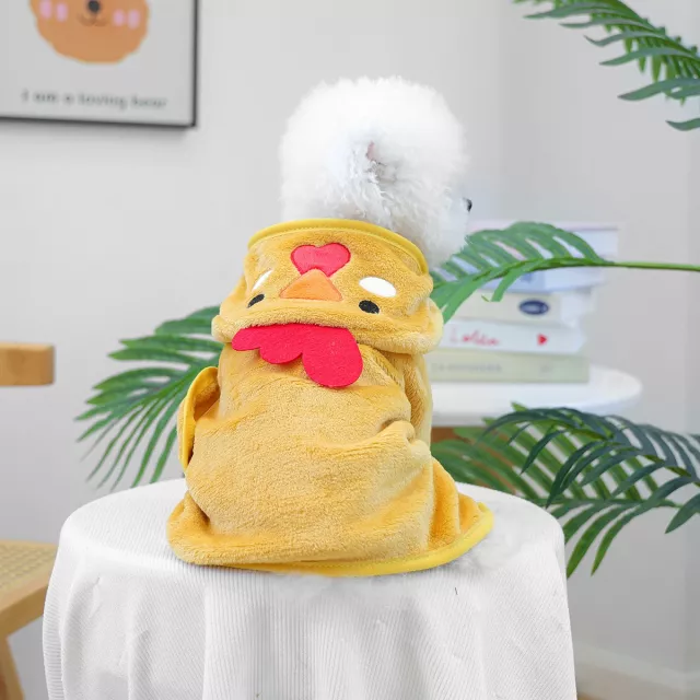 Wrap your furry friend in adorable charm with our Cartoon Chicken Clothes designed for small to medium dogs and even playful cats! This delightful bath towel overall is not just a costume, but a cozy garment that keeps your pet warm during chilly days. Made from soft polyester, this multifunctional puppy cloak is perfect for lounging at home, going for walks, or just snuggling up on the couch!