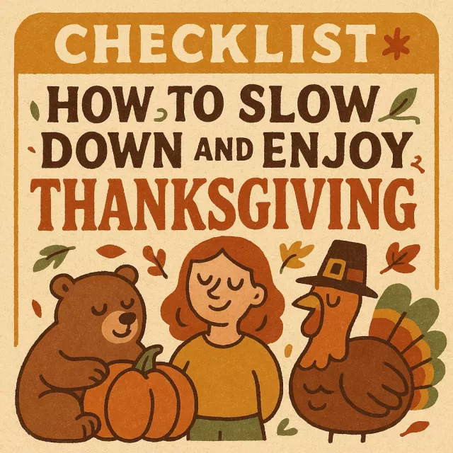 This checklist is for anyone craving a slower, more intentional holiday—busy parents, hosts, mindfulness seekers, or anyone who wants to rediscover how to slow down and enjoy Thanksgiving with ease and joy.