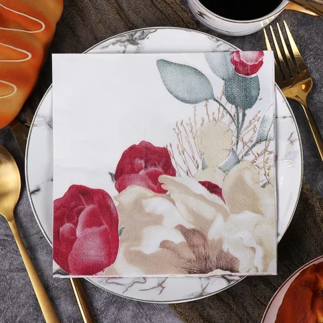 Each napkin is carefully crafted from premium virgin wood pulp and printed with natural food-grade, water-based ink, ensuring both safety and style. The double-layered texture offers excellent absorption and a soft touch, making them as practical as they are beautiful. Measuring approximately 13 x 13 inches, they provide generous coverage for every meal or event.