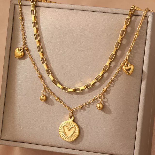 Elegant Double Layer Heart Necklace for Women – Stainless Steel Luxury Jewelry