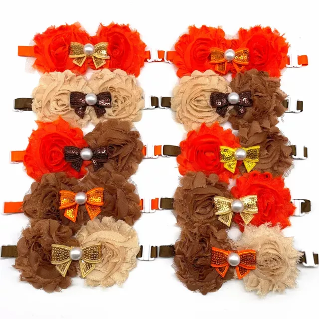 Celebrate the cozy charm of fall with this Thanksgiving Pet Bow Tie Set, designed to make your furry friend the star of every autumn gathering. Perfect for dogs and cats alike, these adorable bow ties bring a festive flair to your pet’s everyday look. Each bow features a beautiful fall-inspired color palette with warm oranges, deep browns, and golden tones, paired with a delicate pearl centerpiece for a touch of elegance. Whether it’s a family dinner, photo session, or a walk in the crisp autumn air, your pet will look irresistibly stylish.