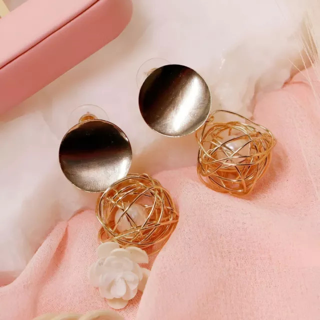 Golden Geometric Wire Ball Dangle Earrings for Women – Vintage Party Style
