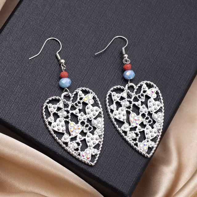 Heart-Shaped Zinc Alloy Earrings – Vintage Rhinestone Jewelry