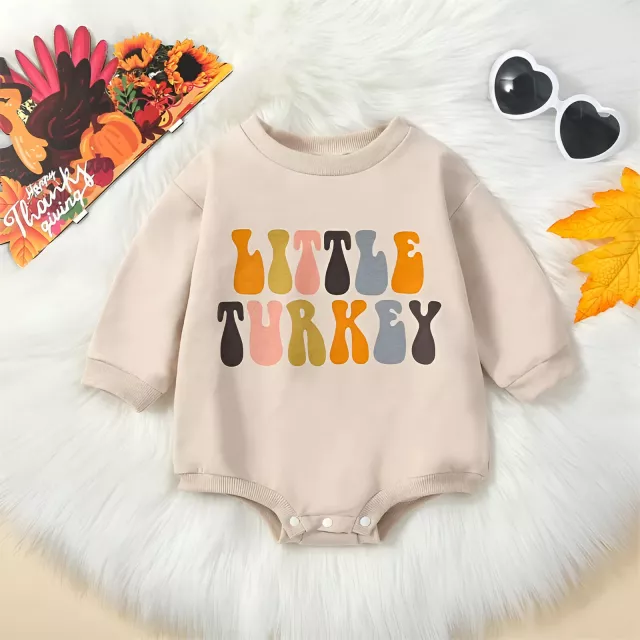 This romper is best worn during the Thanksgiving holiday and throughout the autumn season. The festive design adds a touch of seasonal cheer to your baby’s wardrobe, while the cozy fabric keeps them snug during cool weather. It’s a must-have piece for capturing those precious first holiday moments.