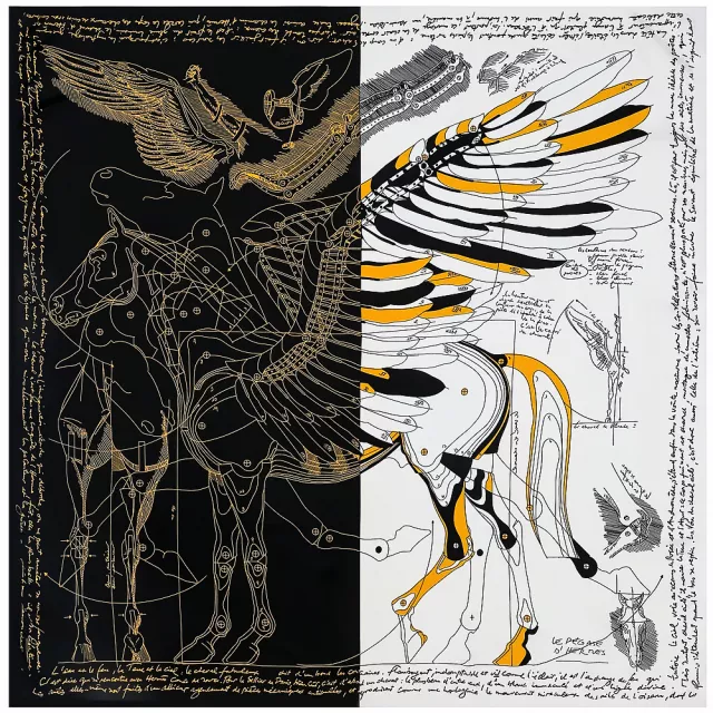 Add a touch of luxury to your wardrobe with this 51-inch 100% silk Pegasus print scarf. Elegant, versatile, and timeless – it’s more than an accessory; it’s a statement of style. Order yours today and experience the effortless beauty of silk sophistication.