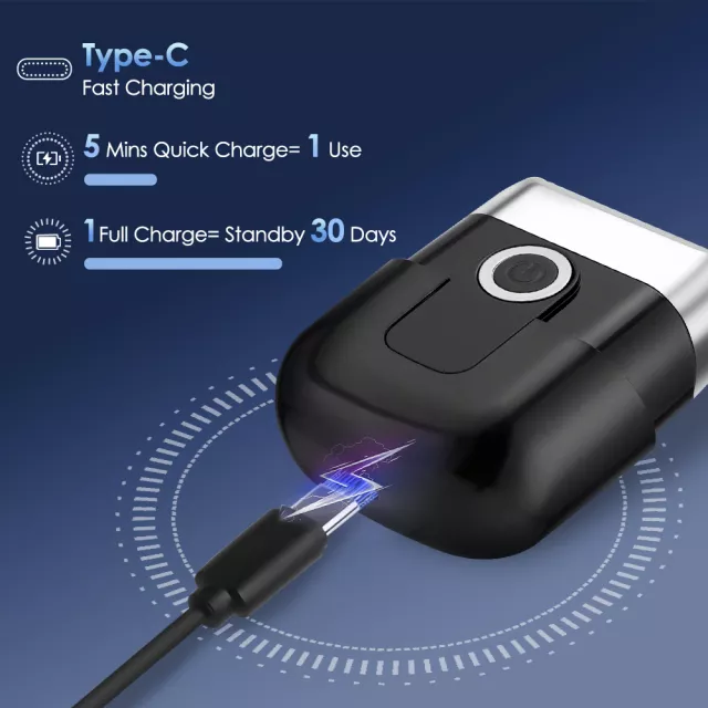The Type-C fast charging feature keeps your shaver ready in minutes—just a 5-minute charge powers one full shave. Fully charged, it lasts up to 30 days of daily grooming, making it a must-have for travel. Its IPX65 waterproof build allows for both wet and dry shaving, and you can rinse it directly under water after each use. The magnetic detachable head ensures effortless cleaning, while the digital display shows real-time battery levels.
