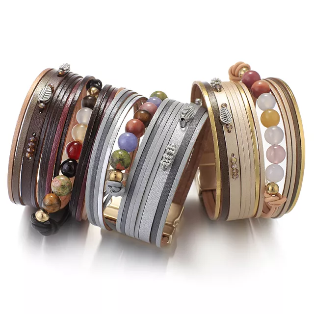 Introducing our stunning Vintage Natural Stone Beaded Leather Bracelet, the perfect accessory to elevate any outfit! This beautiful multilayer wrap bracelet features charming natural stones and intricately designed leather that embodies the essence of bohemian style. Whether you’re dressing up for a night out or adding flair to your everyday look, this bracelet is sure to make a fashionable statement.