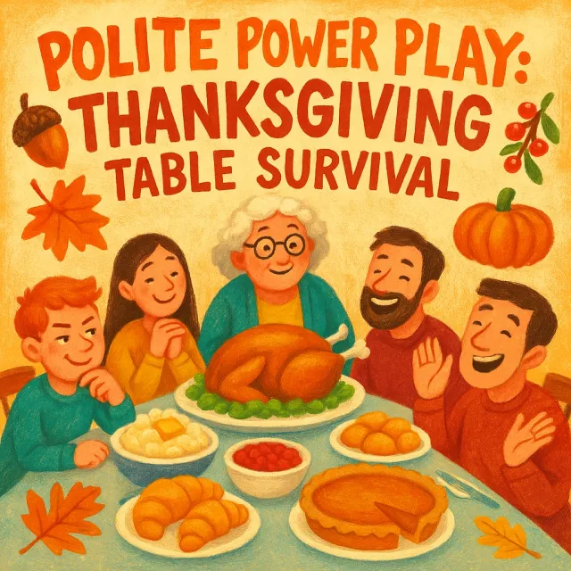 Don’t just survive—thrive at your next family dinner. With Polite Power Play: Thanksgiving Table Survival, you’ll have everything you need to keep conversations warm, positive, and stress-free. Download your digital checklist today and turn awkward silences and heated debates into smiles, laughter, and genuine connection.