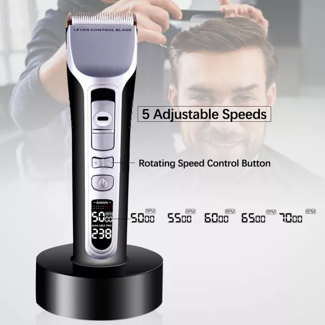 This hair clipper combines innovation with convenience to make every haircut seamless. The LCD display keeps you informed of power levels and settings, so you’re always in control. With four adjustable cutting lengths (0.04 in, 0.05 in, 0.06 in, 0.07 in) and two guide combs (1/8 in and 1/4 in), it’s easy to customize your cut for any style. The detachable blade head allows for quick cleaning, while the portable charging base ensures it’s always ready to go.