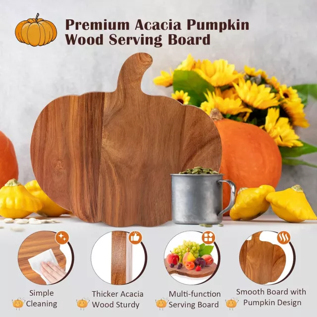 Pumpkin Shaped Wooden Cutting Board with Handle for Cheese & Fruit Platter