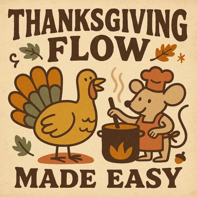 Download Thanksgiving Flow Made Easy today and let AI help you plan, cook, and host your most enjoyable, stress-free Thanksgiving dinner ever!