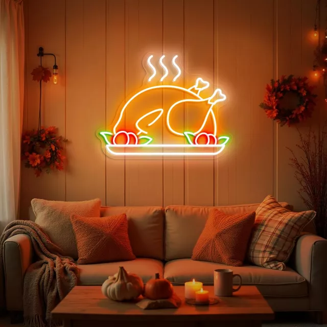Light up your celebrations with the Thanksgiving Turkey & Chicken Neon Sign – a charming addition that instantly sets the tone for the autumn harvest season. Designed to capture the cozy spirit of Thanksgiving, this vibrant neon wall art adds a playful yet elegant glow to your kitchen, dining room, or holiday party setup. Whether you’re hosting a family feast or simply embracing the warmth of fall, this glowing piece makes every gathering more special and memorable.