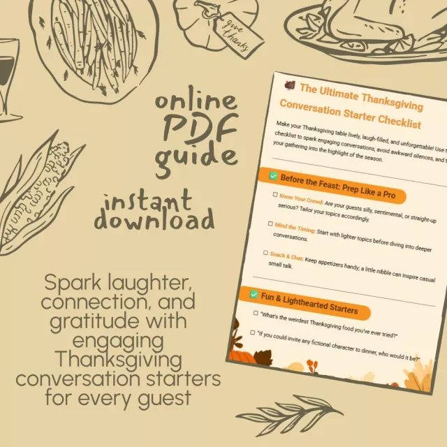 Make this Thanksgiving unforgettable. Download The Ultimate Thanksgiving Conversation Starter Checklist today and transform your gathering into the highlight of the season!