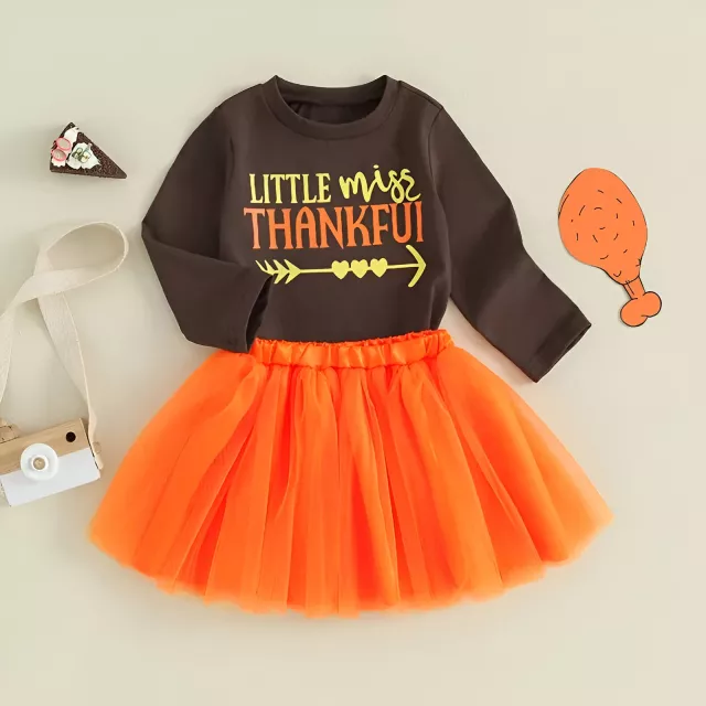 Dress your little princess in the cutest fall fashion with this Toddler Girls Thanksgiving Outfit Set. This 2-piece ensemble includes a soft, long sleeve letter print top and a layered tulle mini skirt that’s perfect for celebrating the cozy charm of autumn. Designed with love and comfort in mind, it’s an ideal pick for family gatherings, Thanksgiving dinners, fall photo shoots, or simply adding a touch of festive flair to everyday wear.