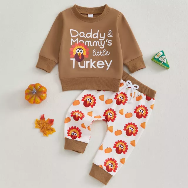 Dress your little one in this charming Turkey Print Thanksgiving Outfit Set and capture memories filled with smiles and warmth. Bring home this cozy, stylish set today and let your toddler shine with holiday cheer!
