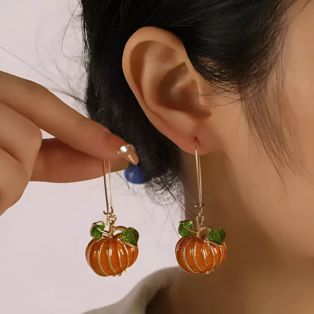 These pumpkin drop earrings aren’t just accessories—they’re a statement of style and joy. The detailed craftsmanship and metallic gleam make them eye-catching, while the fall-inspired design brings a warm, festive vibe to your look. Pair them with cozy sweaters, flowy dresses, or even sleek evening wear for a subtle yet charming pop of personality.